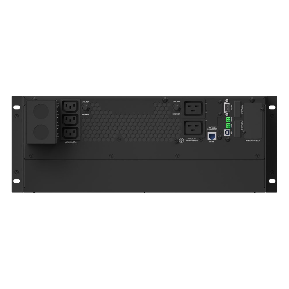 Multiple communication interface: RS232/USB/RS485/EPO/PDU signal/Battery temperature signal/Battery group signal/Dual Intelligent card slot (Mini card slot optional)